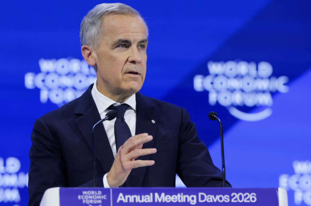 In a veiled denunciation of United States policy Carney called to action and advocated greater cooperation between the world’s middle powers , and argued that middle powers should “stop pretending” the international rules-based order still exists and accept that they live in a “might makes right” world. He underlined that as a result of ongoing erratic shifts in U.S. policies, the rules-based world order of the post–Cold War era, enabled by “American hegemony,” had experienced “a rupture, not a transition,”.He called on middle powers to unite against economic coercion from great powers, which “have begun using economic integration as weapons, tariffs as leverage, financial infrastructure as coercion,  and supply chains as vulnerabilities to be exploited.”