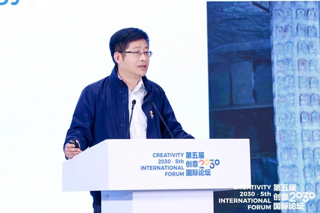 主题演讲环节,匈牙利文化与创新部人工智能参事加博尔·苏斯以“人工智能赋能文化:建设数字时代智能文化生态系统”为题,介绍了匈牙利在相关领域的发展进程;北京航空航天大学新媒体艺术与设计学院教授、智能创意内容生成与沉浸体验北京市重点实验室主任胡勇,分享了智能空间媒介的文化内容沉浸展示与体验;奥地利林茨电子艺术中心艺术节与展览部总经理维罗妮卡·利布尔围绕“科技即文化:人工智能、文化创新与可持续发展”,交流了在科技与艺术融合领域的实践心得;新维畅想数字科技(北京)有限公司董事长惠鹏宇展示了数字微痕技术在中埃萨卡拉联合考古等文化遗产保护与活化中的应用案例,以及校园数字博物馆赋能文化保护传承的应用。