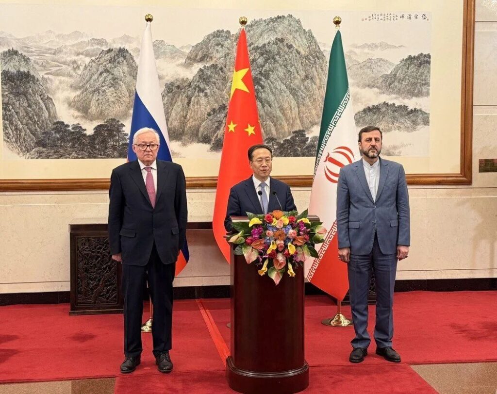 2025年3月14日,中俄伊北京会晤成功举行。中华人民共和国外交部副部长马朝旭、俄罗斯联邦外交部副部长里亚布科夫、伊朗伊斯兰共和国外交部副部长加里布阿巴迪分别与会。(图源:央视新闻)